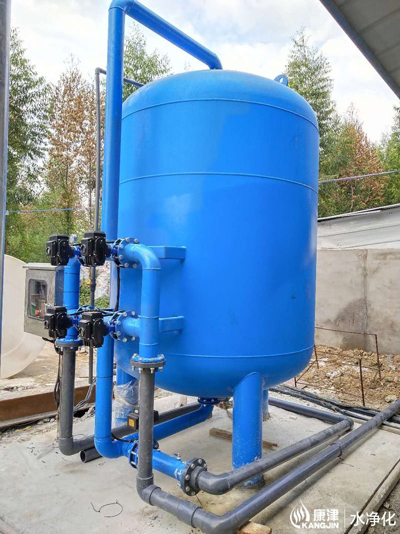 設(shè)備是壓力式的,其原理是當(dāng)原水自上而下通過濾料時(shí),水中懸浮物由于吸附和機(jī)械阻流作用被濾層表面截留下來;當(dāng)水流進(jìn)濾層中間時(shí),由于濾料層中的砂粒排列的更緊密,使水中微粒有更多的機(jī)會(huì)與砂粒碰撞,于是水中凝絮物、懸浮物和砂粒表面相互粘附,水中雜質(zhì)截留在濾料層中,從而得到澄清的水質(zhì)。經(jīng)過濾后的出水懸浮物可在3毫克/升以下。