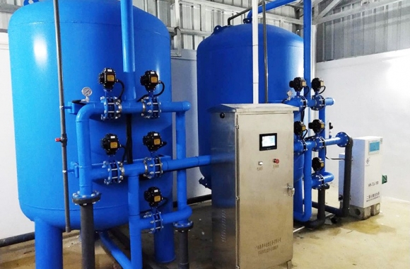 設備是壓力式的,其原理是當原水自上而下通過濾料時,水中懸浮物由于吸附和機械阻流作用被濾層表面截留下來;當水流進濾層中間時,由于濾料層中的砂粒排列的更緊密,使水中微粒有更多的機會與砂粒碰撞,于是水中凝絮物、懸浮物和砂粒表面相互粘附,水中雜質截留在濾料層中,從而得到澄清的水質。經過濾后的出水懸浮物可在3毫克/升以下。