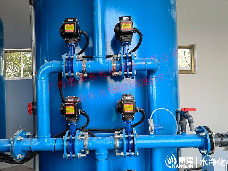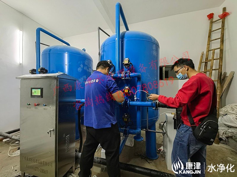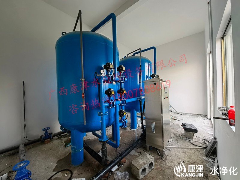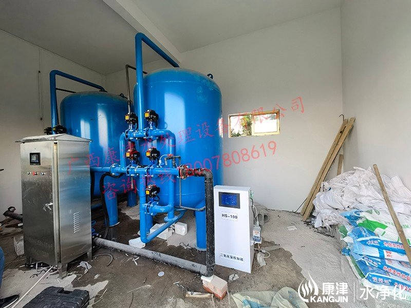 項目名稱:貴港旺嶺村地下水凈化工程 設備名稱:30噸壓力式凈水設備 工藝流程:河水-石英砂過濾器(二級過濾)-二氧化氯消毒...