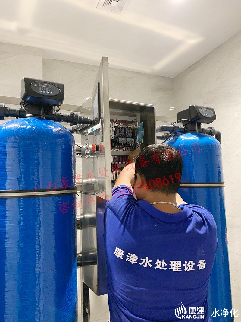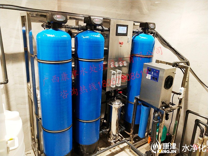 工藝流程:原水箱-原水泵-石英砂過濾器-活性炭過濾器-樹脂過濾器-精密過濾器-反滲透設(shè)備-軟水鹽-凈水箱-變頻供水回水殺菌系統(tǒng)-用水點(diǎn)