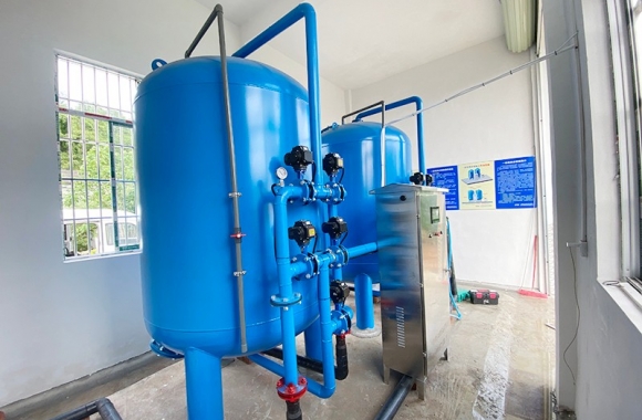 項(xiàng)目名稱:貴港石寨村地下水凈化工程 設(shè)備名稱:30噸壓力式凈水設(shè)備 工藝流程:河水-石英砂過濾器(二級(jí)過濾)-二氧化氯消毒...