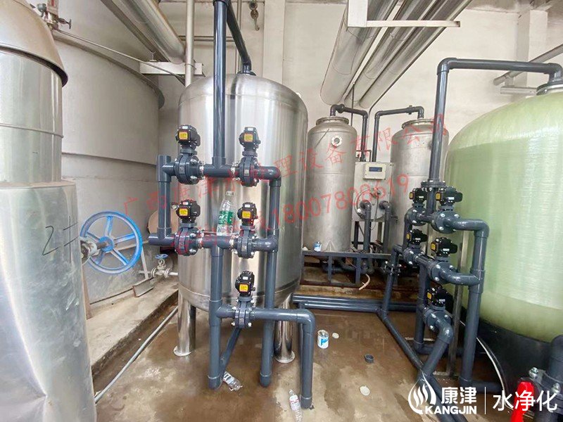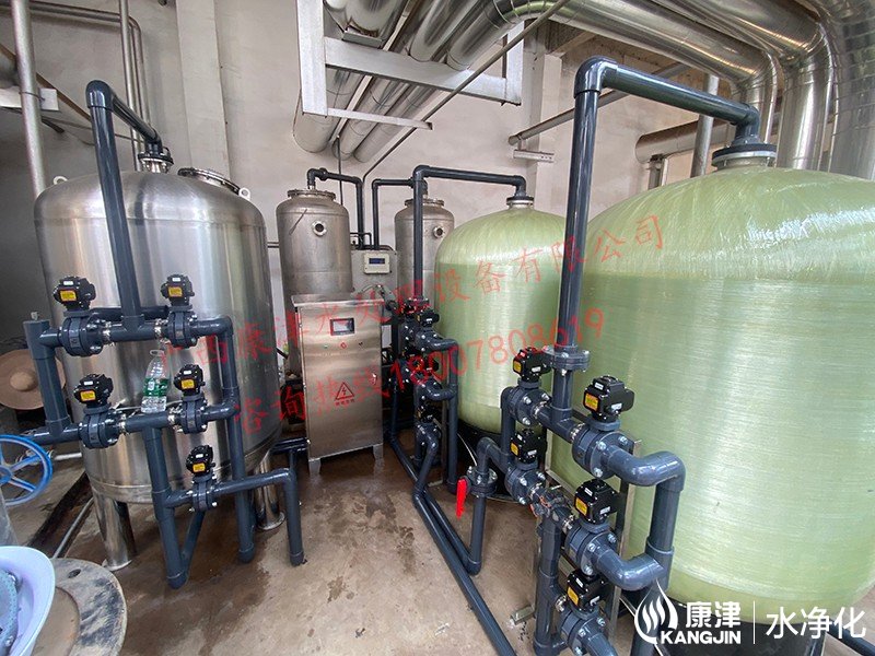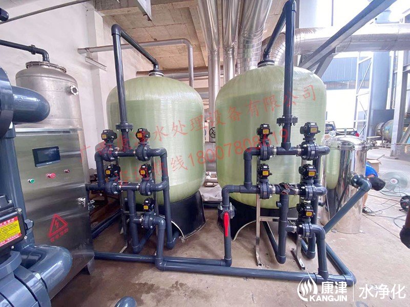 工藝流程:地下水+自來水-水箱-石英砂過濾器-軟化水設備1-軟化水設備2-精密過濾器-各用水點