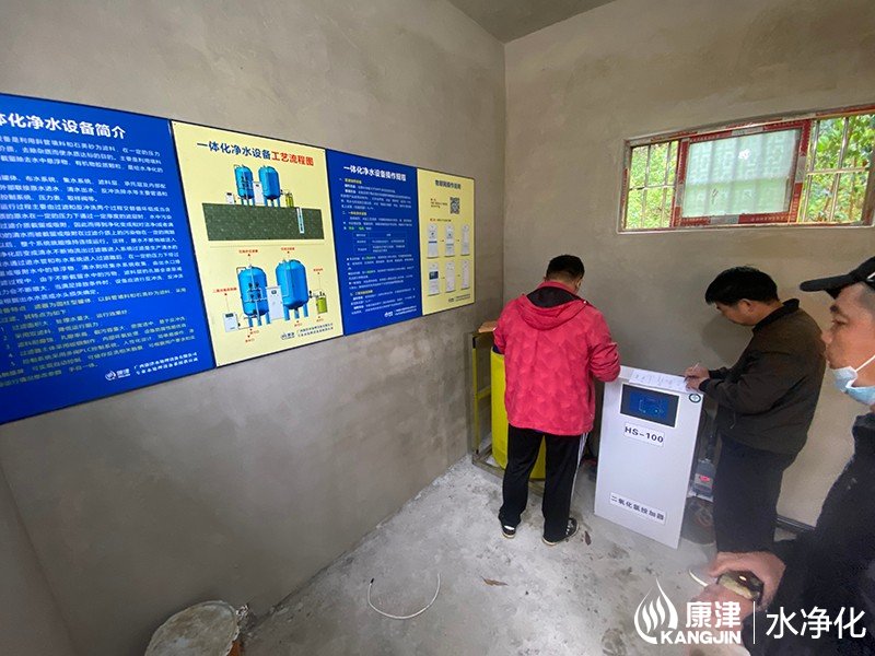 工藝流程:河水-絮凝加藥-沉淀過濾器-石英砂過濾器-二氧化氯消毒